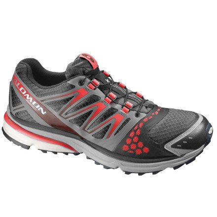 High-mileage runners who need dirt-loving kicks with pronation control and stable cushioning should reach for the Salomon Men's XR Crossmax Guidance Trail Running Shoe. An asymmetric-designed stretch-mesh upper flexes to accommodate your foot when you slide it in, and then hugs it with support once you're pounding out the miles. Cushioning in the heel and midfoot absorbs the impact from gravelly roads, while OS Tendon bars in the sole encourage efficient and powerful heel-to-toe transitioning. Other touches like a gusseted tongue, one-pull Quiklaces, and breathable mesh paneling means that blazing down the trail will feel like a jog around the park.